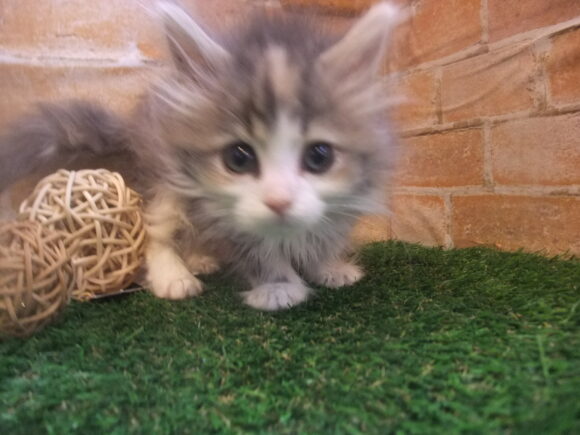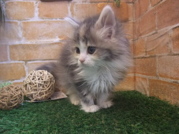 寒さに強いトリプルコートと賢く遊び好きな性格を持つロシア原産の猫種です!! 味わいのあるブルーパッチドタビーの毛色と愛らしい瞳が大変可愛い女の子です